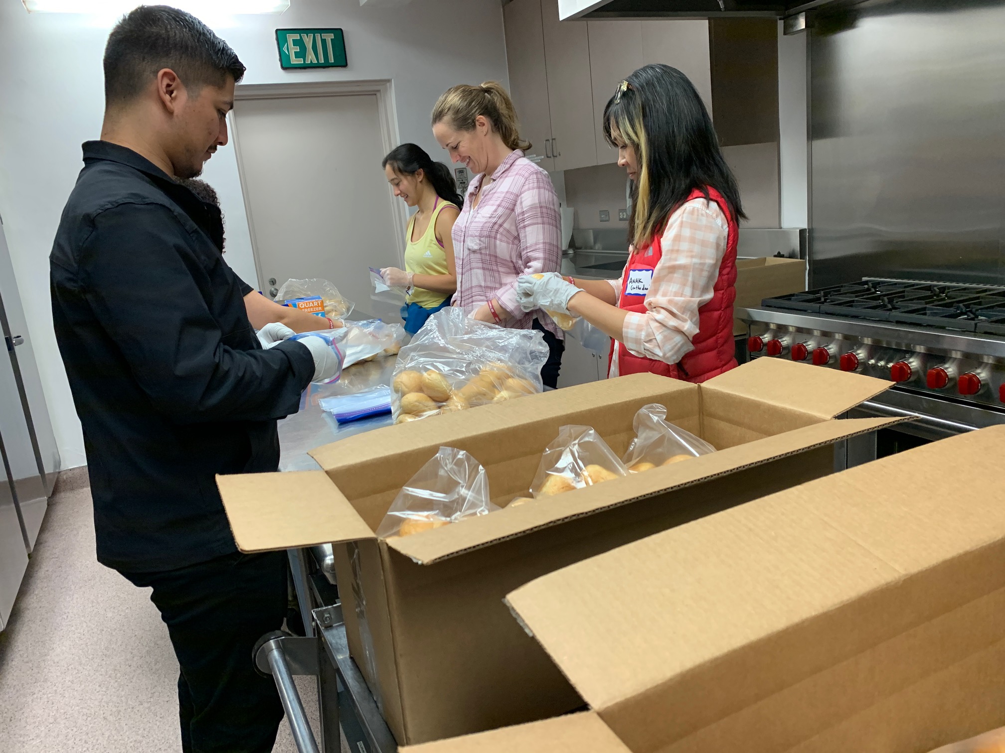Five team members (pictured below) from Impact Sciences spent a Friday afternoon with hundreds of like-minded volunteers at the Brentwood Presbyterian Church, assembling 3500+ survival kits to be delivered to various homeless communities and individuals throughout the city. Each kit contains more than 70 items, providing sustenance to individuals in their time of need. Items in the kit cover hydration, hygiene, nutrition, utility, and weather protection. Neatly packaged in a large duffel bag, the kit comes with a warm wool blanket, food, clothing, soap, gloves and other common necessities. Once the kits are assembled, a separate volunteer group leads the delivery effort to homeless communities, including downtown Los Angeles, North Hollywood, Hollywood, Santa Monica, and other areas across the county.